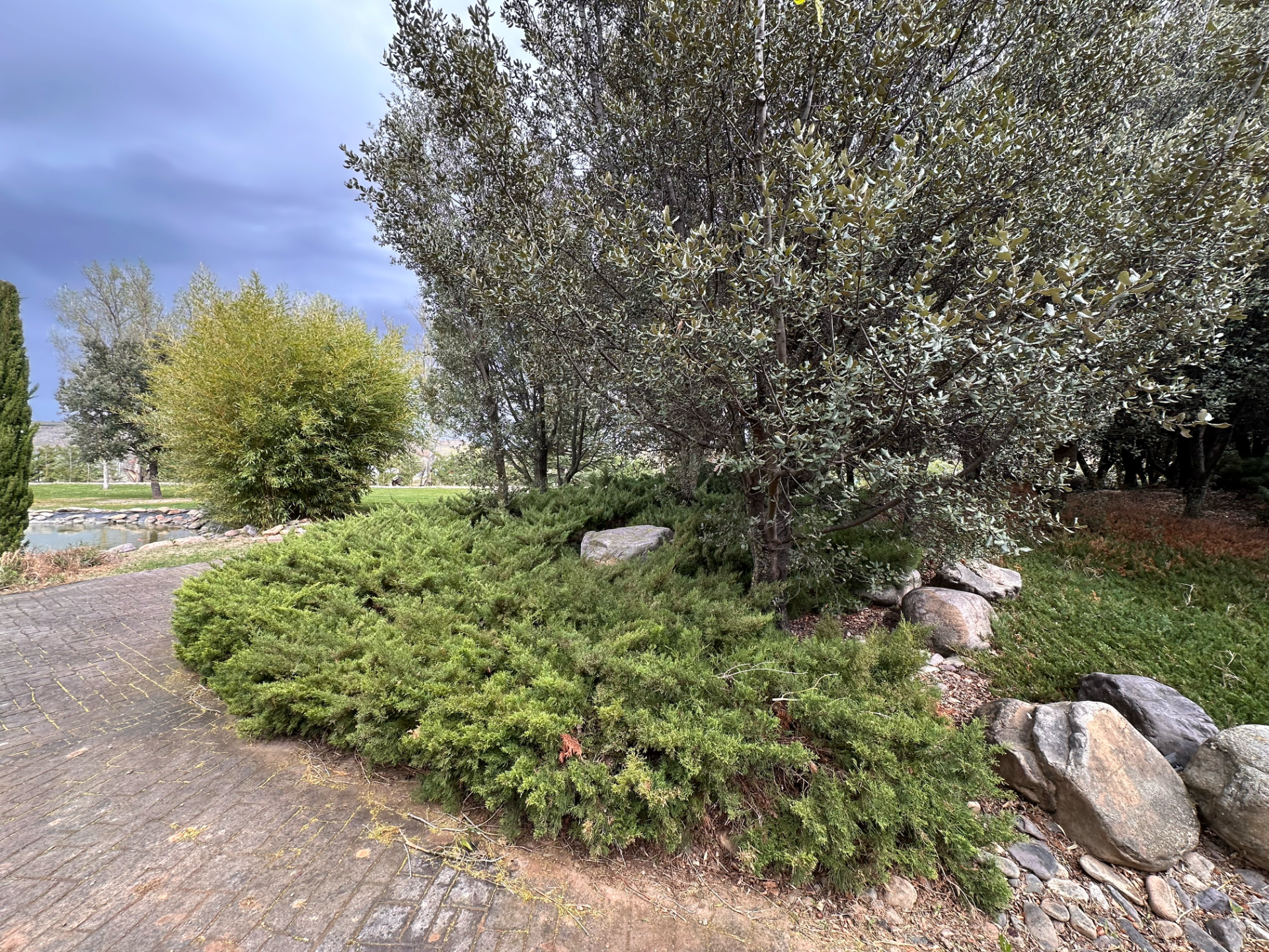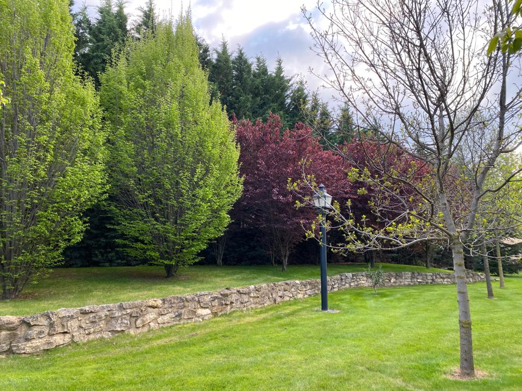 El jardín combina especies de gran porte como Quercus ilex, olivos centenarios, Aesculus hippocastanum (castaños de Indias), magnolios, Cedrus libani, Carpinus betulus y masas de bambú, generando profundidad, sombra y cambios estacionales muy marcados. La presencia de lagos naturales refuerza la sensación de oasis y exclusividad.