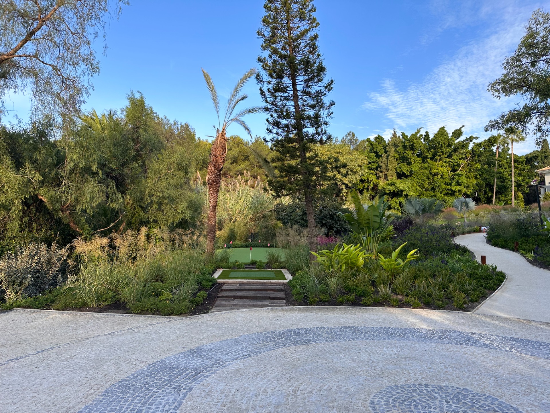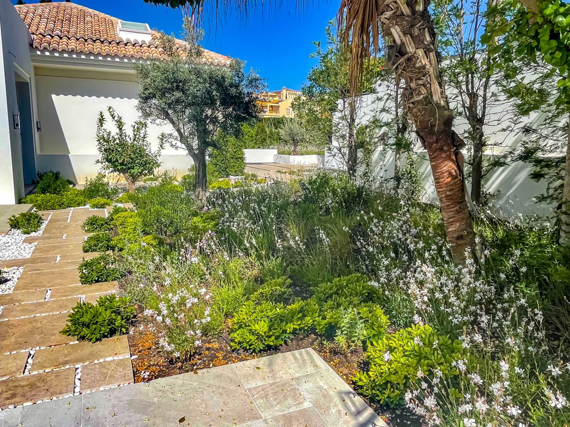 El diseño genera distintos ambientes, zonas de sombra y amplios espacios abiertos, pensados para el disfrute y la privacidad. El proyecto se ejecutó con un presupuesto entre 400.000 y 440.000 euros, dando como resultado un jardín maduro, elegante y plenamente integrado en el estilo de vida marbellí.